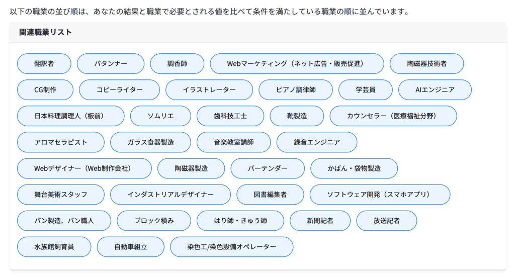 どっちも適職診断みたいな感じで、質問に答えるとオススメの職業を出してくれます。