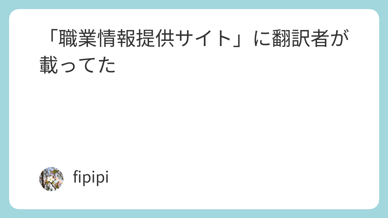 厚労省の職業紹介サイトに翻訳者が載ってて、なんだか嬉しかったので記事にしてみました。